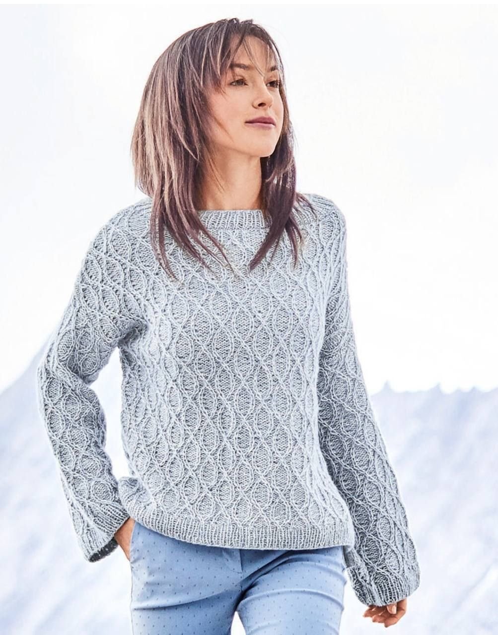 Интересный джемпер с узором из снятых петель Простая выкройка, краткое толковое описание, приятный результат.