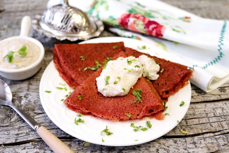 Свекольные блинчики с соусом из икры с луком и сметаной #масленица2023 - пошаговый рецепт с фото