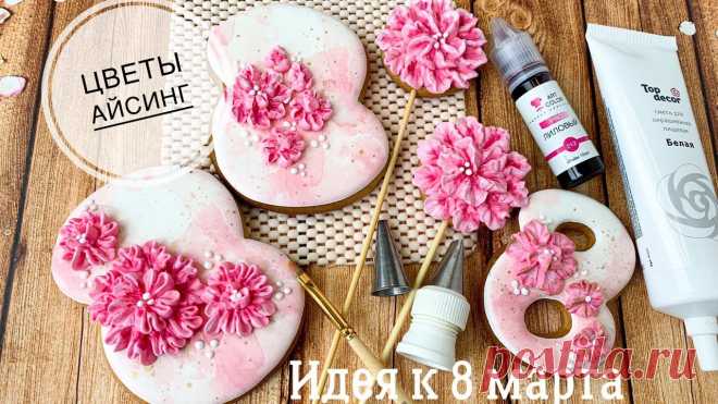 Цветы из айсинга. 🌸Идея к 8 марта🌸 Чтобы не пропускать новые видео подписывайтесь на мой канал✅, жмите кнопочку 🛎 ну и не забывайте про лайки👍🏻, мне очень приятно, я буду видеть, что я не з...