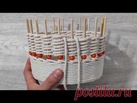 ÇÖP ŞİŞ ÇUBUKLARI VE MAKROME İP İLE SEPET YAPIMI✔️ KENDİN YAP