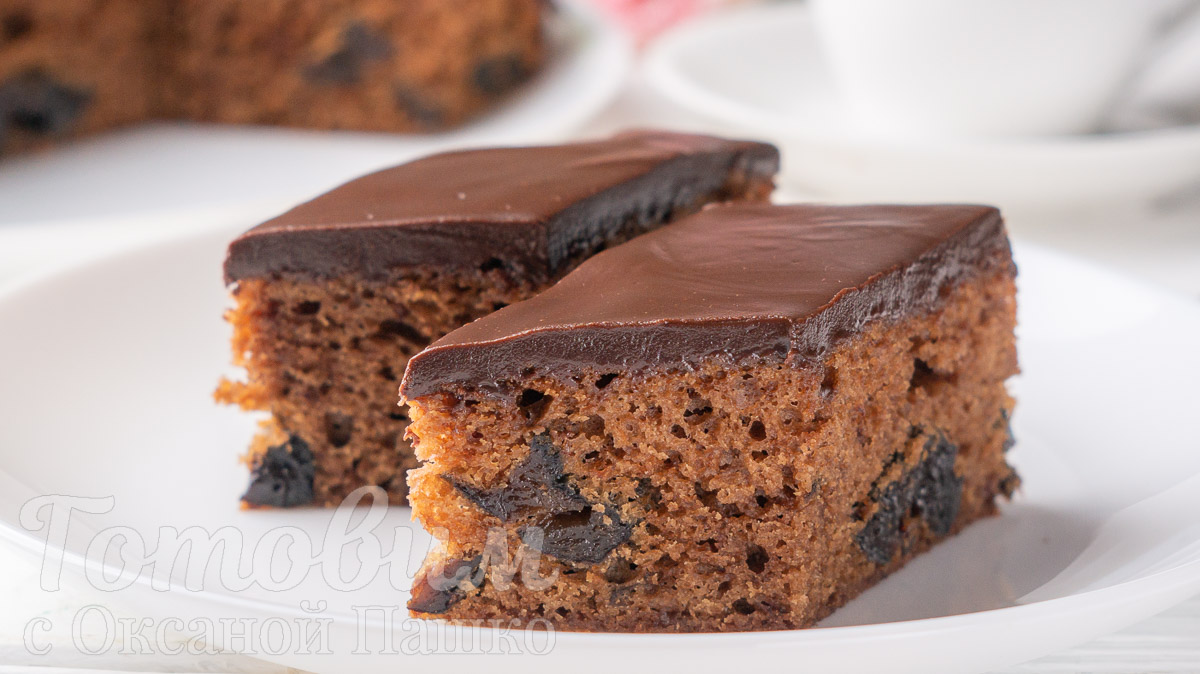- Шоколадное пирожное с черносливом получилось очень вкусным и аппетитным. В меру сладкий шоколадный бисквит отлично сочетается с черносливом, а растопленный верхний слой шоколада придает этому пирожному насыщенный шоколадный вкус.