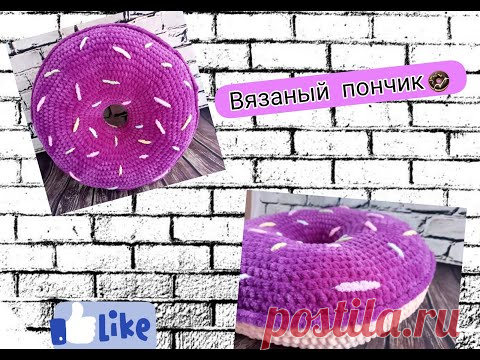 МК Вязаный пончик крючком! Вяжем плюшевый пончик диаметром 30 см! Плюшевая подушка!