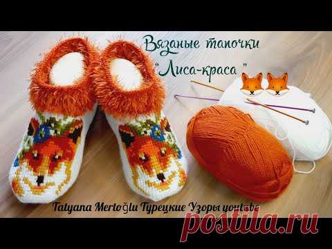 Тапочки "Лиса-краса"🦊🦊 тунисское вязание.🧡🤍