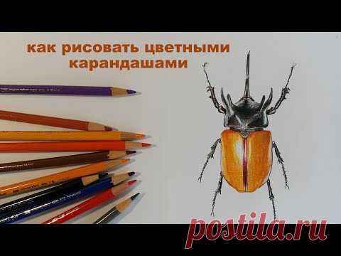 как рисовать цветными карандашами как нарисовать сову как нарисовать жука