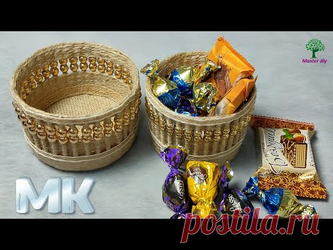 Корзинка-конфетница плетеная из джута с бусинами своими руками Быстро и красиво МК\Master diy