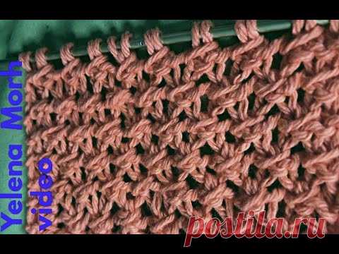 Узор ''Сеточка из обрат.перебросов''. Видео МК | Вязание спицами для начинающих