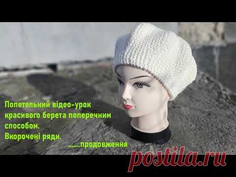 Весняний берет поперечним способом в'язання.Продовження попетельного відео-уроку .Вкорочені ряди .