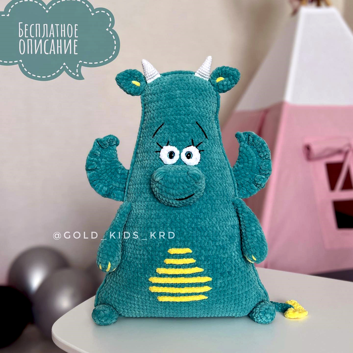 PDF Декоративная подушка Дракон крючком. FREE crochet pattern; Аmigurumi toy patterns. Амигуруми схемы и описания на русском. Вязаные игрушки и поделки своими руками #amimore - плюшевый дракон, большой дракончик из плюшевой пряжи, дракоша, динозавр, динозаврик.