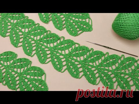 Ленточное кружево "ЛИСТИКИ" вязание крючком МОТИВЫ ИРЛАНСКОГО КРУЖЕВА Crochet Lace Ribbon Tape