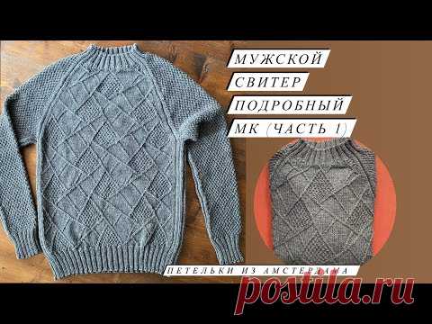Свитер для мужчин регланом сверху. Рисунок «Набросок». МК(часть 1),рассчитываем и набираем петли.