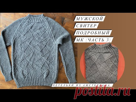 Свитер для мужчин регланом сверху. Рисунок «Набросок». МК(часть 3). Вяжем до проймы.