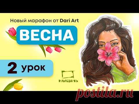 Рисуем скетч МАРКЕРАМИ! Марафон Весна, 2 урок!