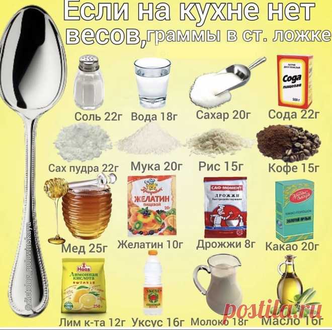 Действительно не в каждом доме, есть на кухне кухонные весы и может возникнуть проблема с измерением ингредиентов во время их приготовления, но её можно достаточно легко решить с помощью кулинарных хитростей измерения продуктов! Достаточно знать с помощью чего можно измерить вес ингредиентов, вместо весов - смотрите табличку.