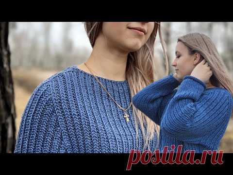 Роскошь💥 на каждый день: простой пуловер спицами "Незабудка" из пряжи с шелком! Авторская работа.