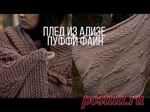Необычный плед из Ализе пуффи файн. Alize Puffy Fine. Плед с перьями. Лора Норд.