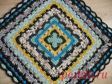 Клёвый Квадратный Коврик Крючком (связано из ветоши, без узелков! 1 метр по диагонали)