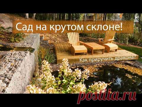Ландшафтный сад с ручьём, водопадами и прудами на горном склоне