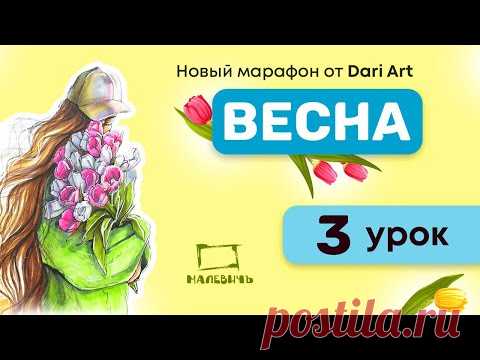 Рисуем скетч МАРКЕРАМИ! Марафон Весна, 3 урок!