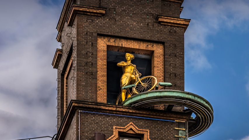 'Vejrpigerne' ('The Weather Girls') sculpture on top of the Richshuset building in City Hall Square, Copenhagen, Denmark - Bing Gallery