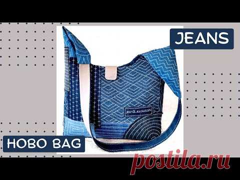 Сумка - хобо из старых джинсов с имитацией боро и японской вышивки сашико