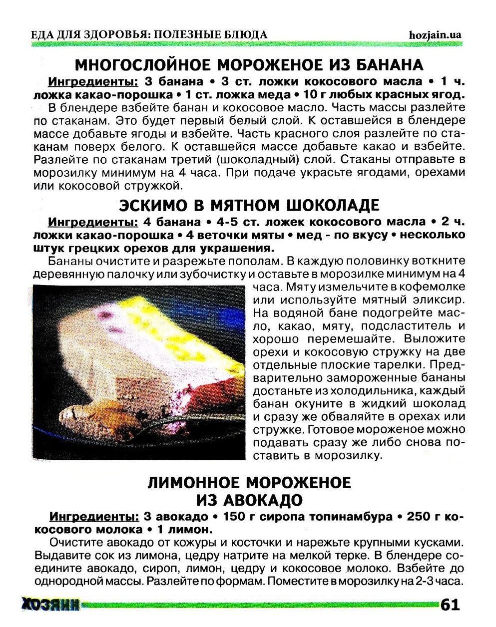 Многослойное мороженое из банана. Эскимо в мятном шоколаде. Лимонное мороженое из авокадо