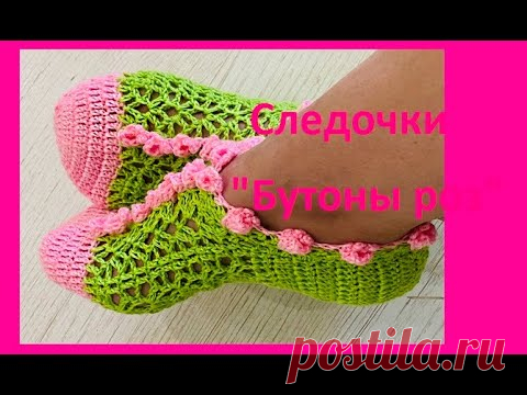 СЛЕДОЧКИ с Бутонами РОЗ..вязание КРЮЧКОМ , crochet footprints ( С № 59)
