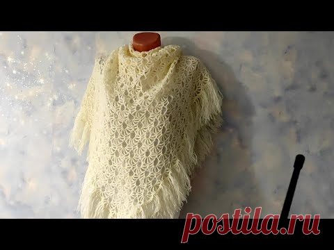АЖУРНАЯ ШАЛЬ ОЧЕНЬ КРАСИВЫМ УЗОРОМ, крючком. Шаль для начинающих.