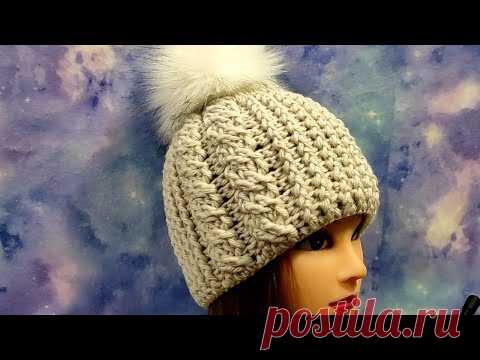 ШАПОЧКА узором КОСЫ крючком. Подробное видео шапочки КОСАМИ для начинающих.