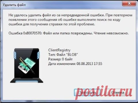 Файл или папка повреждены. Чтение невозможно. Ошибка 0х80070570. Лечение.
