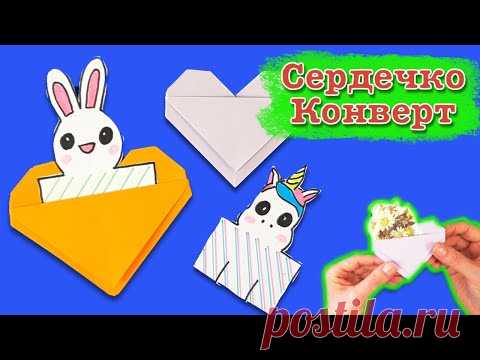 Открытка кролик. Сюрприз своими руками. Как сделать конверт сердечко. origami paper postcard