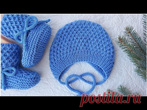 Детская шапочка - чепчик спицами для новорожденного. Очень подробный мастер-класс.