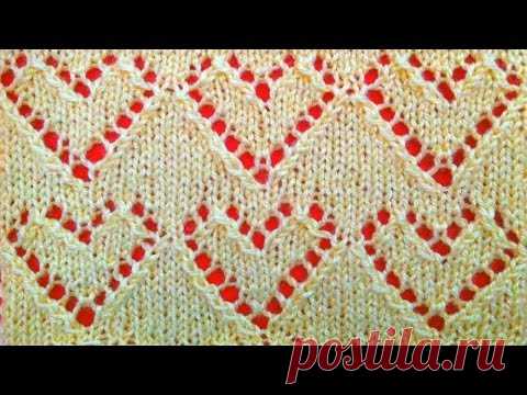 Ажурный узор сердечки вязание спицами для начинающих. Openwork pattern of a heart knitting needles