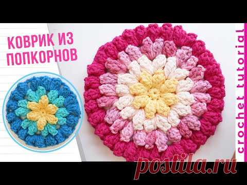 Салфетка-Коврик узором Попкорн. Crochet popcorn stitch tutorial.