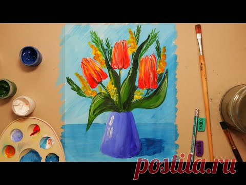 ВАЗА С ЦВЕТАМИ "ТЮЛЬПАНЫ🌷" НАРИСУЕМ РИСУНОК С ДЕТЬМИ