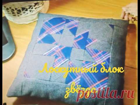 Лоскутная подушка. Лоскутный блок звезда .