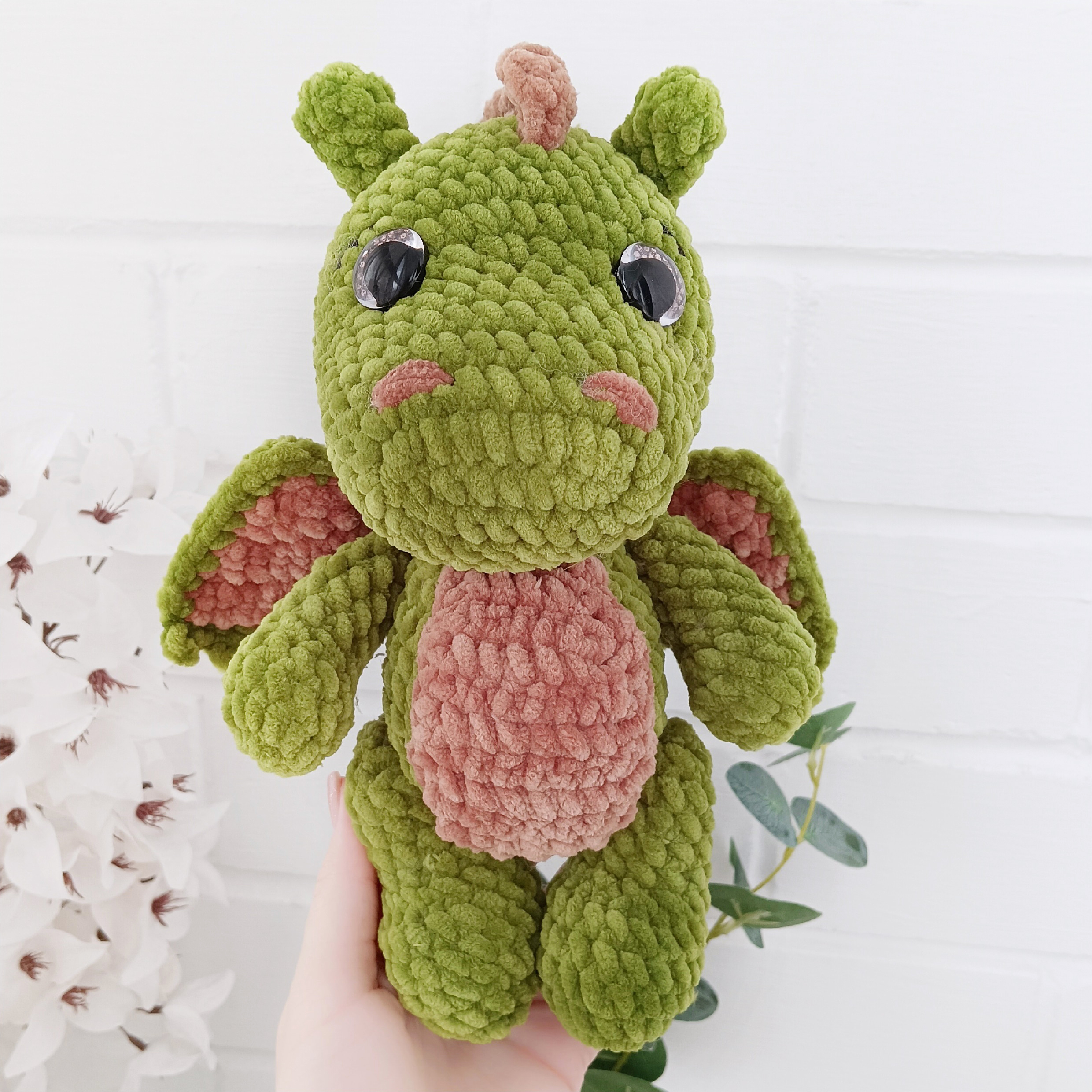 PDF Дракоша крючком. FREE crochet pattern; Аmigurumi toy patterns. Амигуруми схемы и описания на русском. Вязаные игрушки и поделки своими руками #amimore - плюшевый дракон, дракончик из плюшевой пряжи, динозавр, динозаврик.