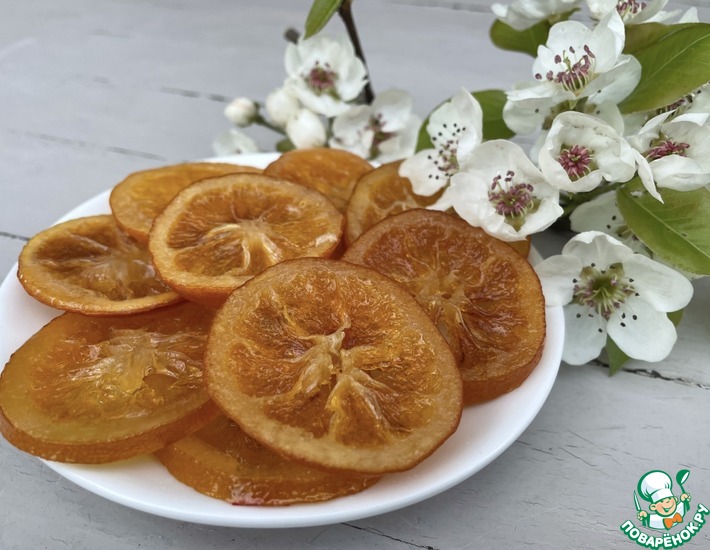 - 400 граммов Лимонов. Почему именно 400? Пять лимонов столько весят. Хорошо вымыть – это важно. Потому что в дело пойдут лимоны вместе с кожурой. Заморские вообще рекомендую тереть щёткой с содой. Хуже не будет. Нарезал …, моя бабушка, Царствие ей небесное, говорила «колясочками» про такую нарезку. В общем, ломтиками - кружочками. Толщиной миллиметров по пять. Тоньше резать не стоит. Тщательно выбрал все косточки. При этом старался как можно меньше нарушать целостность «тела лимона». Опустил лимоны в кипящую воду. Буквально пару минут подержал, не больше. Просто погрузил, подержал и … тут же переставил в воду ледяную, прям, чтобы со льдом. Пусть минут десять в этой ванне ледяной побудут. От них не убудет. Сварил сироп. Т. е. не то, чтобы сварил, а в процессе размешивания сахара в воде нагревал его. И как раз к моменту, когда сироп стал прозрачным, он, сироп и стал потихоньку булькать, закипая. И выложил в этот сироп лимоны. При очень слабом нагреве, проварил лимоны 45 минут. Лучше всего постоянно приглядывать, стараясь держать лимоны в сиропе. Если не лень, то и переворачивать их аккуратно время от времени. И!!! Ни в коем случае не давать закипать. А потом выложил лимоны аккуратно на противень, который застелил бумагой для запекания. И в духовку. Температура духовки не более ста градусов. Я держал час. Может чуть больше получится. Тут от духовки зависит. Лимоны должны стать упругими, сахарный сироп превратиться в мягкую такую оболочку. Дал лимонам остыть, а потом они у меня пролежали ночь на противне. Обсыхали. И вот утром… Хоть тактильно ломтики и липкие, но не слипаются, т. е. легко отделяются друг от друга. За счёт того, что лимоны некрупные, ломтики …, в общем, не надо от такого ломтики откусывать кусочки. Положил я его в рот прямо целиком, и он уже через мгновение стал исходить нежным, сладко лимонным вкусом. И чаем его … свежезаваренным … с мятой. А чай тут, товарищи, ну очень вкусный! Настоящий. Что из Солохаула, что из Дагомыса. Конечно, надо покупать исключительно майский и, чтобы ручного сбора. Не про8адаете. Ну вот. Как-то так.