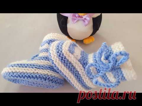 Пинетки для маленьких Мужчин спицами | длина подошвы 10 см.
