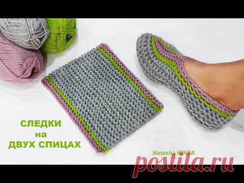 СЛЕДКИ БЕЗ ШВА НА ПОДОШВЕ НА ДВУХ СПИЦАХ GESTRICKTE HAUSSCHUHE MIT SPEICHEN KNITTED SLIPPERS