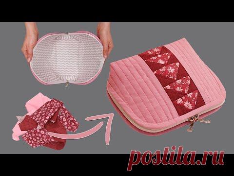 Сшила очень просто косметичку из остатков ткани - подарок своими руками!
