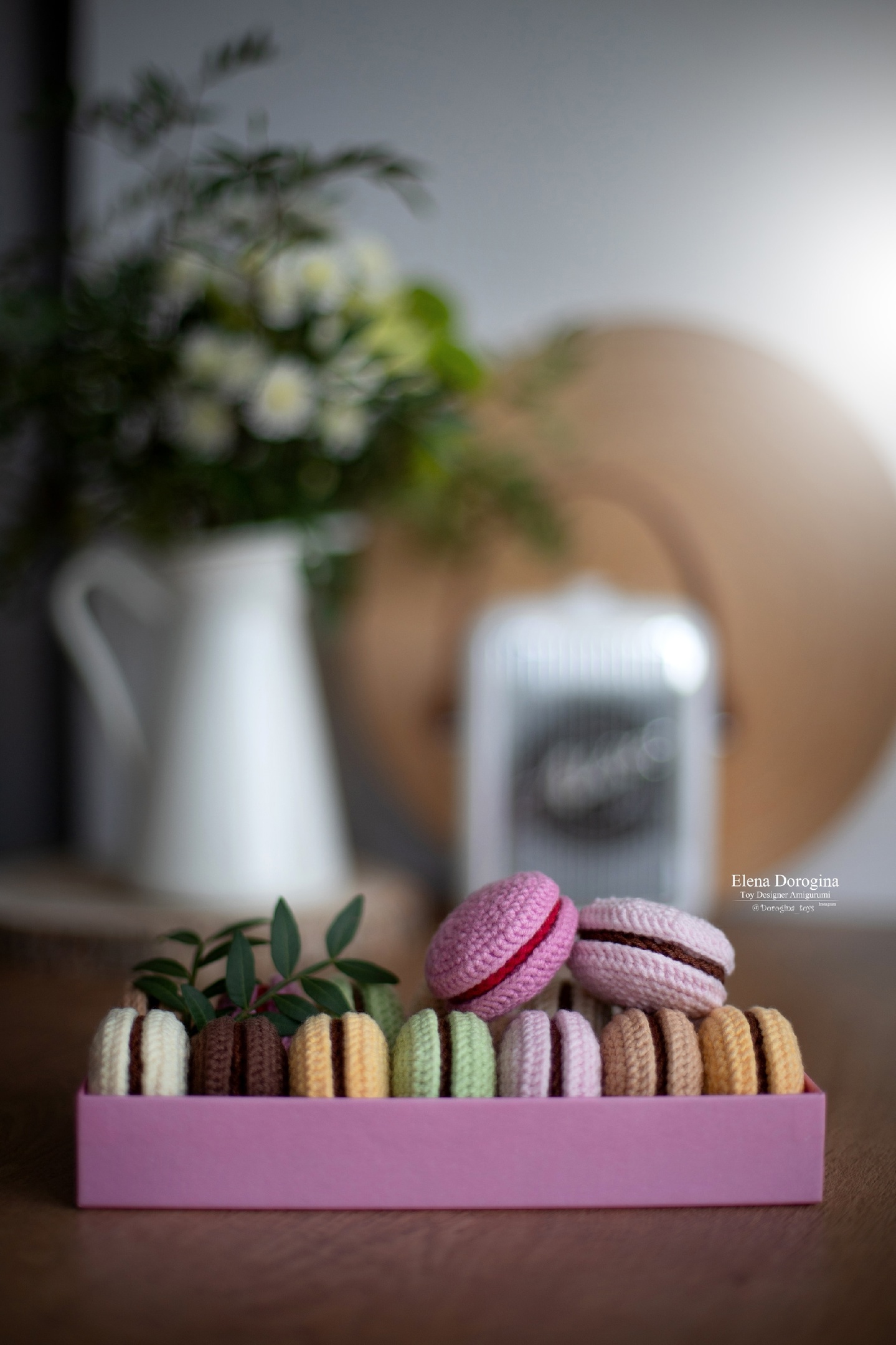 PDF Макаруны крючком. FREE crochet pattern; Аmigurumi toy patterns. Амигуруми схемы и описания на русском. Вязаные игрушки и поделки своими руками #amimore - маленькое пирожное крючком, печенье, макаруны, сладости, еда.