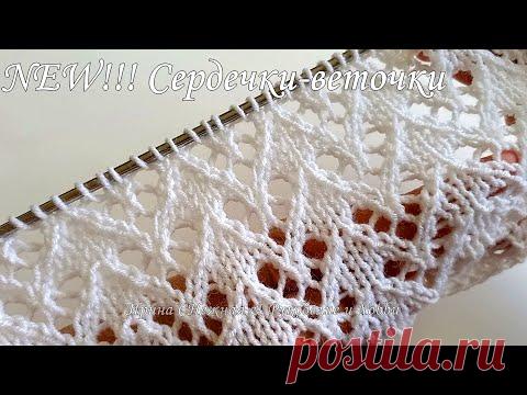 😍😊 ТЕХНИКА ВЫПОЛНЕНИЯ И УЗОР ОЧЕНЬ ИНТЕРЕСНЫ! ПО-НОВОМУ "СЕРДЕЧКИ-ВЕТОЧКИ" - АЖУРНЫЙ УЗОР СПИЦАМИ