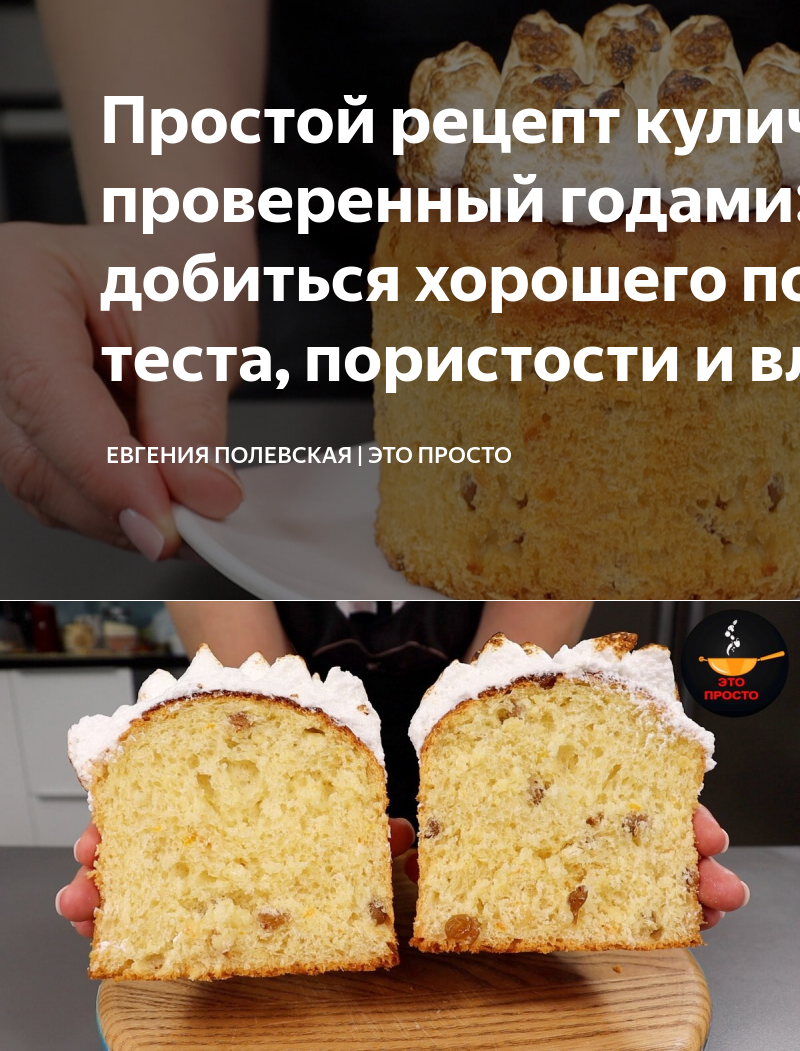 Простой рецепт кулича, проверенный годами: как добиться хорошего подъёма теста, пористости и влажности | Евгения Полевская | Это просто | Дзен