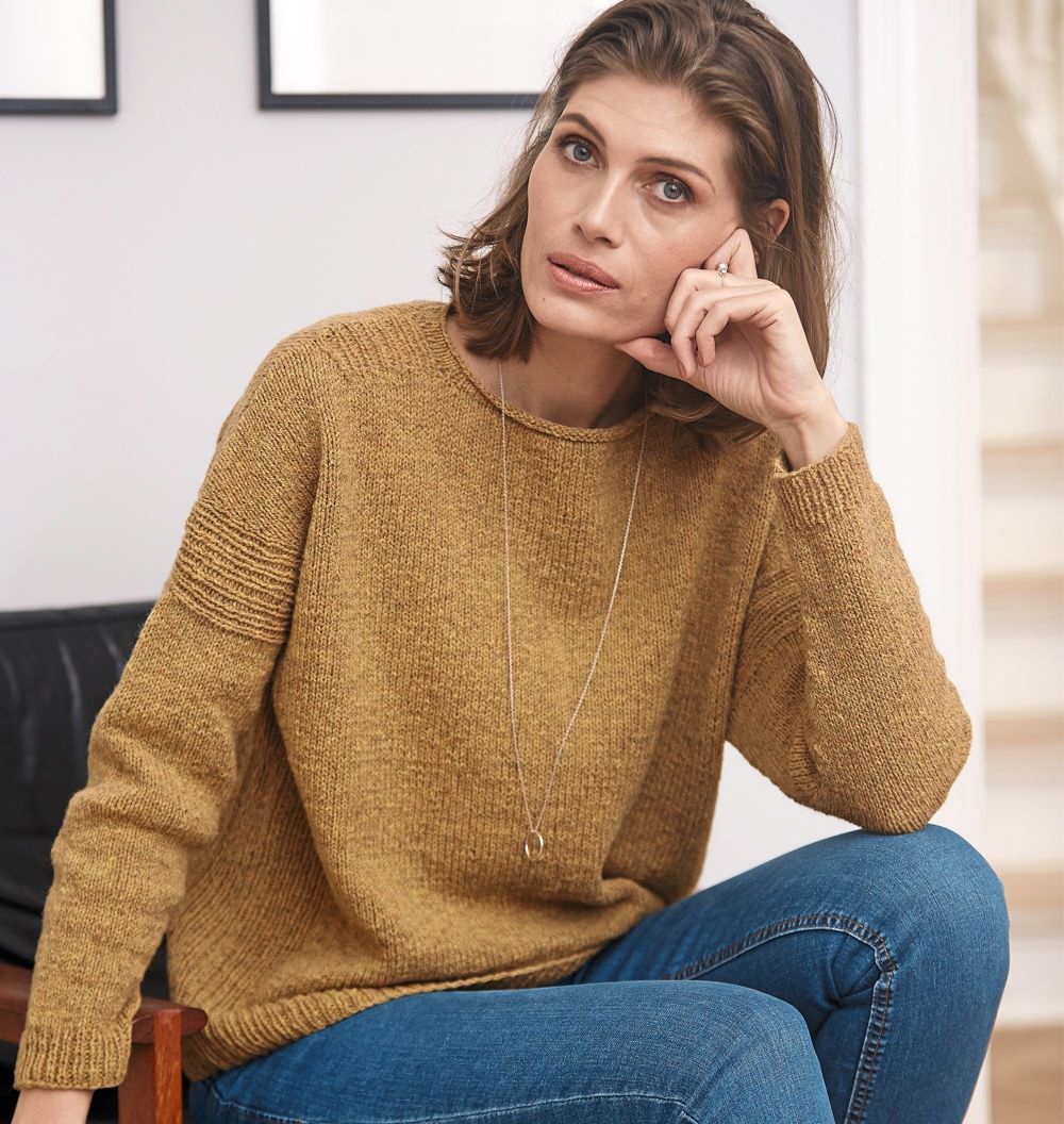 Гладкий джемпер с рельефной отделкой (Вязание спицами) | Журнал Вдохновение Рукодельницы Джемпер рыхлой вязки в стиле кэжуал, благородного золотистого оттенка декорирован резинками, создающими рельефный узор на фоне лицевой глади и обрамляющими рукава и низ изделия. Размеры S (M) L (XL) Ширина изделия по обхвату груди 110 (116) 122 (128) см Длина изделия 65 (66) 67 (68) см ВАМ ПОТРЕБУЕТСЯ Пряжа (100% шерсти; 50 г/175 м) — […]