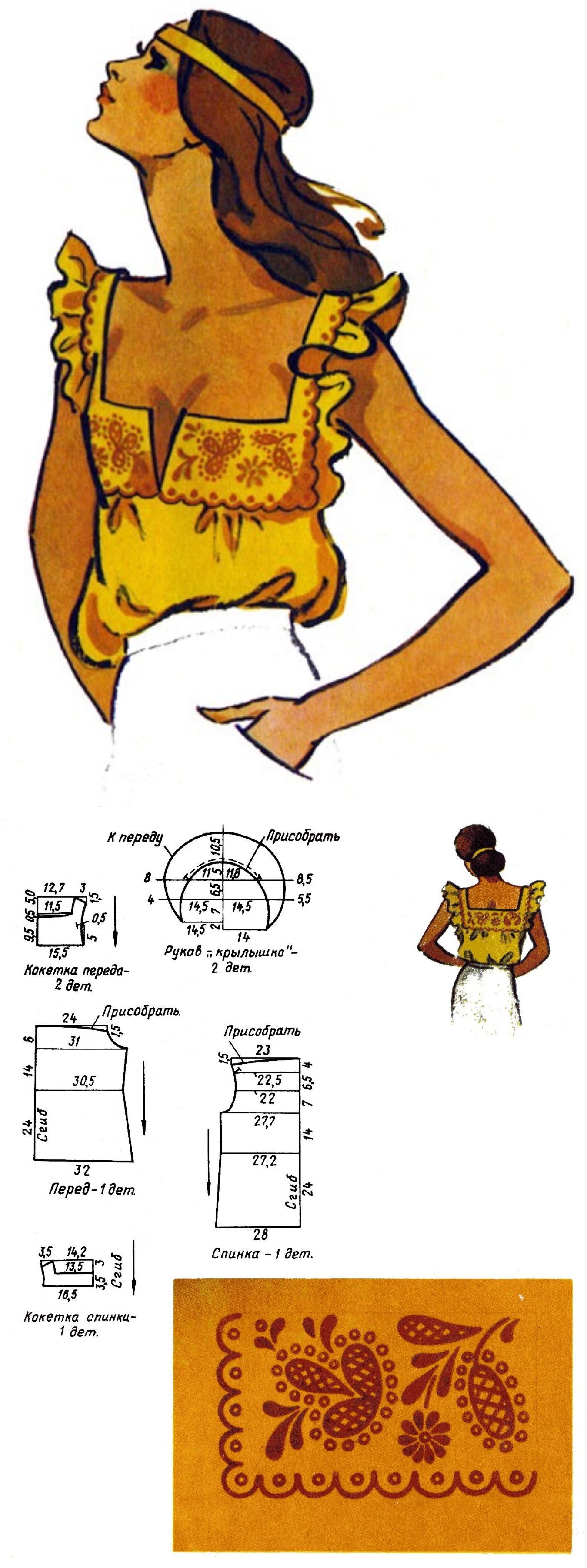 Летняя открытая блузка на кокетке с рукавом-"крылышко" и вышивкой