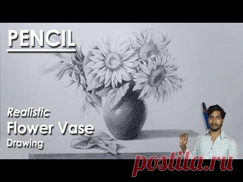 How to Draw A Realistic Flower Vase in Pencil | Sunflower Drawing | step by step | Supriyo