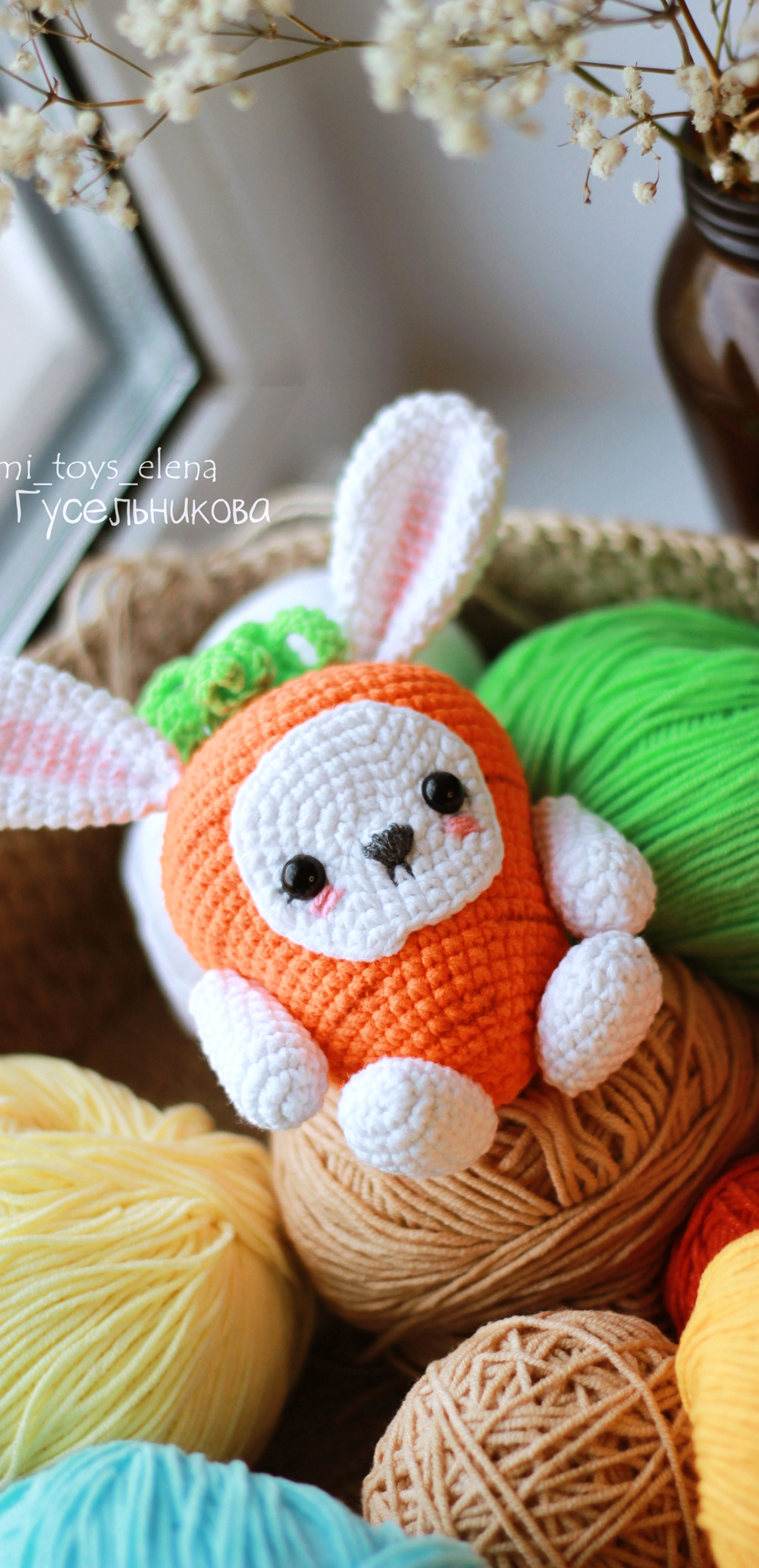 PDF Зайчик-морковка крючком. FREE crochet pattern; Аmigurumi animal patterns. Амигуруми схемы и описания на русском. Вязаные игрушки и поделки своими руками #amimore - зайка, заяц, маленький зайчик в виде морковки, кролик, зайчонок, крольчонок.