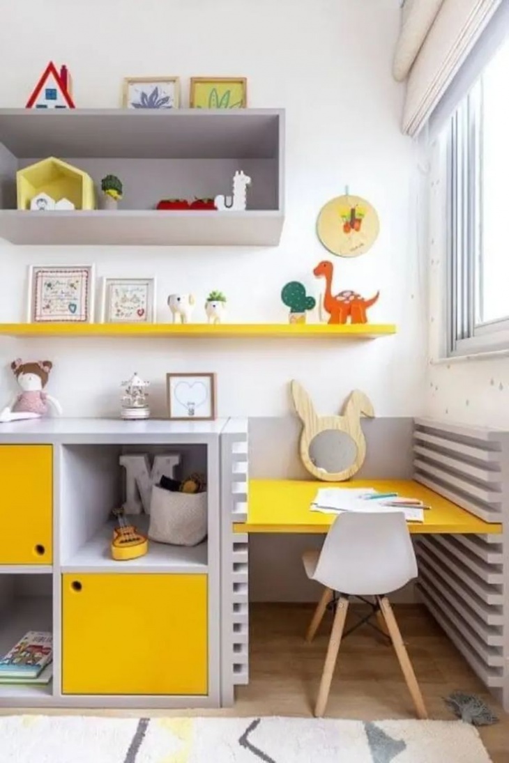 Несколько реек по периметру внутри стола позволят тому «расти» вместе с маленьким владельцем. Кроме того такая идея удобна для детей разного возраста или даже взрослых разного роста, пользующихся одним столом: