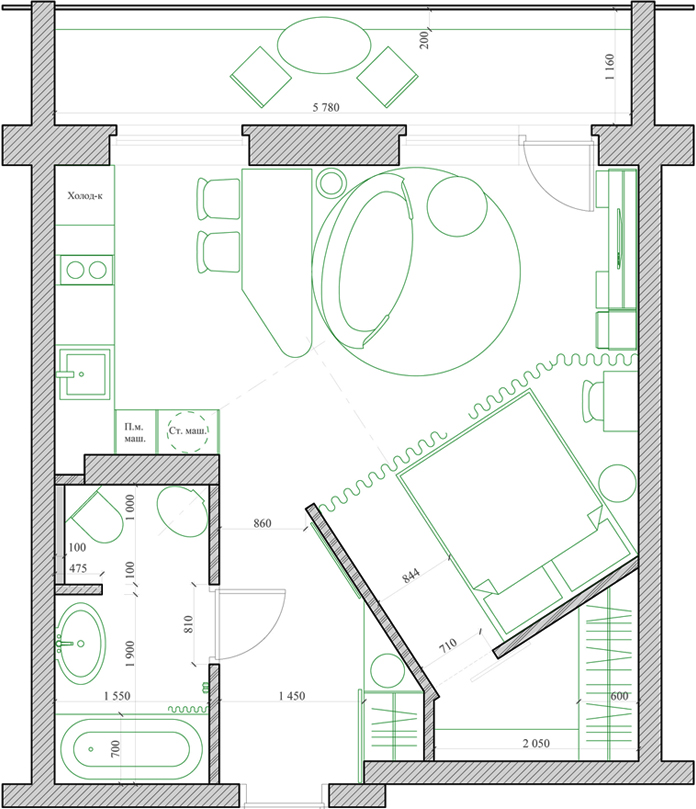 Архитектурная студия ЭГО :: Перепланировка и интерьер однокомнатной квартиры в Екатеринбурге