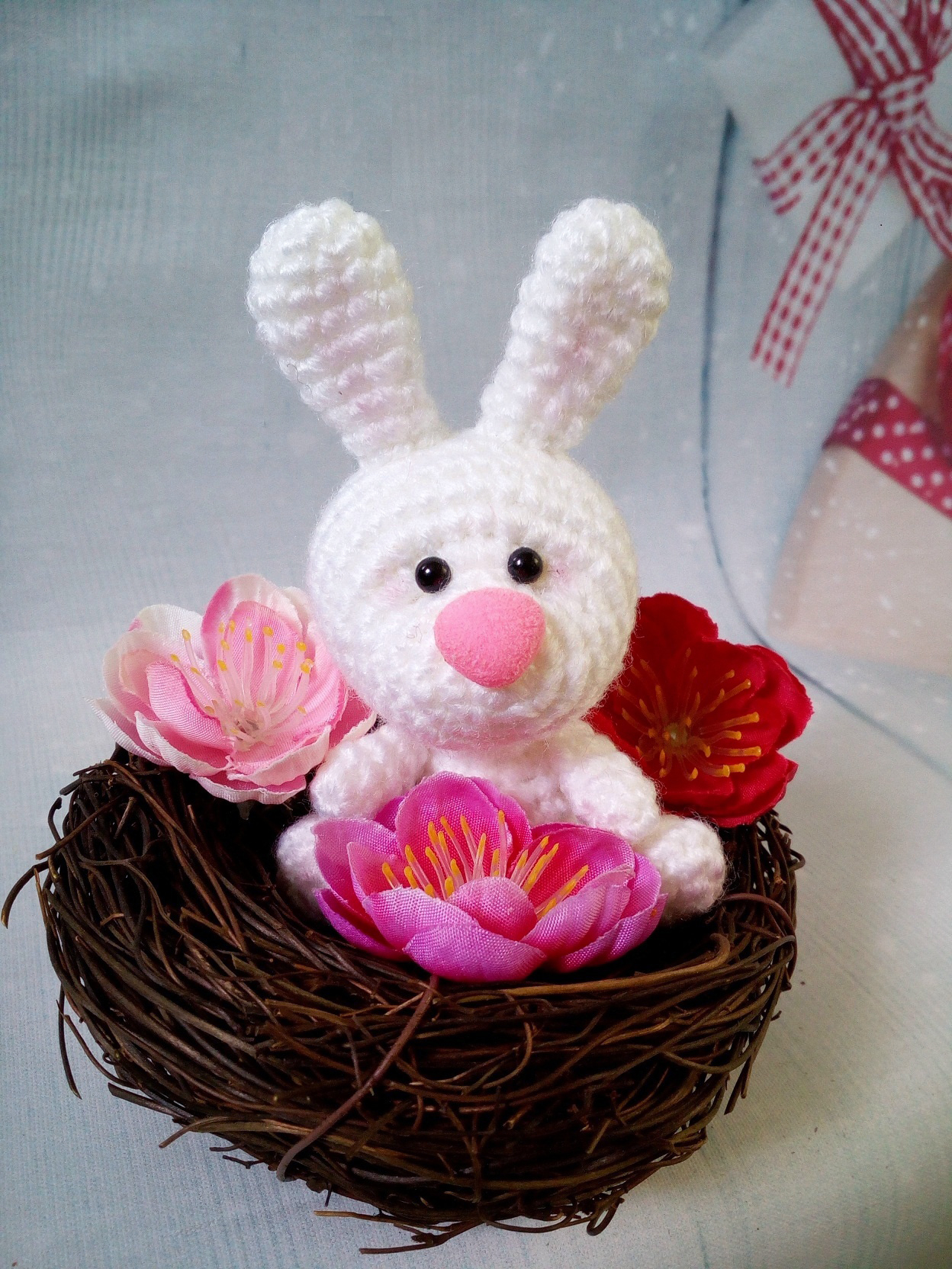 PDF Зайка крючком. FREE crochet pattern; Аmigurumi animal patterns. Амигуруми схемы и описания на русском. Вязаные игрушки и поделки своими руками #amimore - маленький зайка, заяц с цветком, зайчик, кролик, зайчонок, крольчонок.